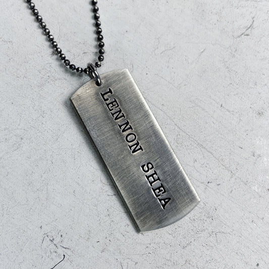 Dog Tag Necklace - LARGE Handmade Sterling Silver Dog Tags Pendants