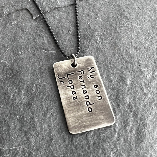 Dog Tag Necklace - Handmade Sterling Silver Dog Tags Necklace - Custom and Personalized Just for You - MEDIUM size Hand Stamped Pendant